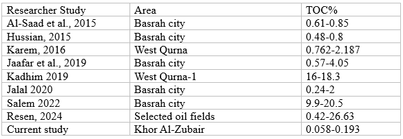 Figure 7. Table 3: Total Organic Carbon values comparison between the current study and previous studies.