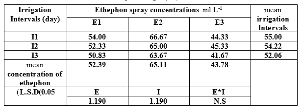 Figure 3. Table (2) The effect of irrigation Intervals, ethephon spray concentrations, and their interaction on the number of branches m-2