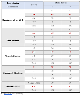 Figure 2. Table (2): Descriptive Statistics for the Reproductive information