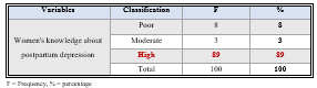 Figure 4. Table (4.1 ): Assessment Women's Knowledge about Postpartum Depression
