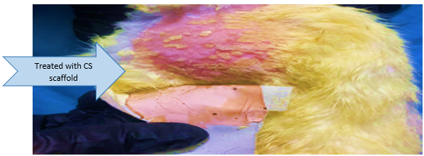 Figure 6. Figure (2): shows the treated with nanofiber scaffold (CS+PVA+GS) after a month of exposed UVA irradiation. the roughness and desquamation observed in UV-irradiated skin .