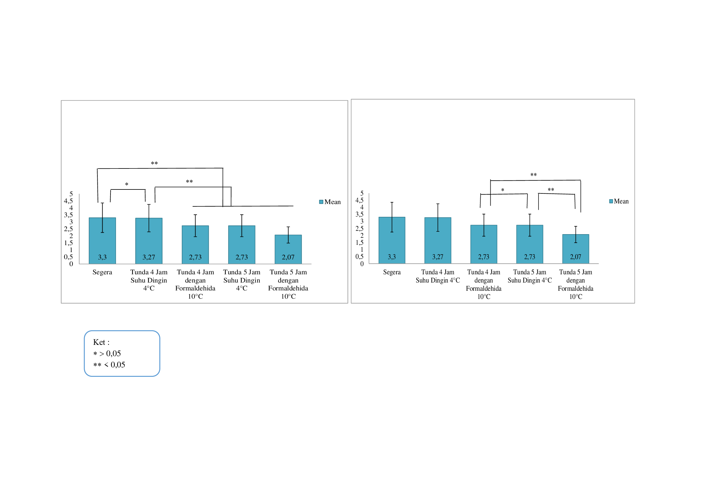 Berdasarkan hasil dari penelitian dapat disimpulkan bahwa perlakuan sampel suhu 4˚C pada penundaan waktu 4 jam maupun 5 jam lebih baik dibandingkan dengan penambahan pengawat formaldehida 10%. Hal ini selaras dengan penelitian Maulidiyah (2023) yang mengatakan bahwa perlakuan sampel di suhu 4˚C 6 jam lebih baik dibandingkan dengan perlakuan sampel yang disimpan di suhu ruang dengan penundaan 6 jam dan ditambahkan formaldehida 10% [15].