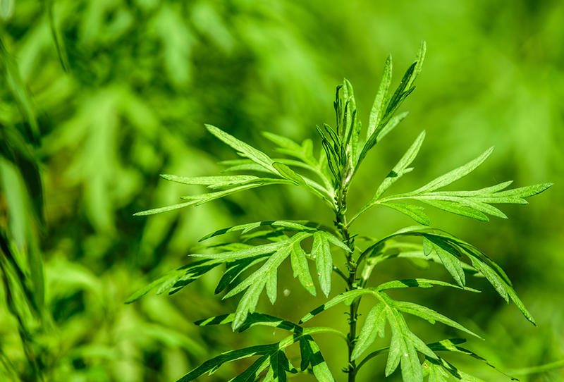 It is a perennial wild shrub with wide branches and compound leaves, which may reach a height of about 40 cm. Its roots are strong and erect. The first leaves have an oval to spherical shape, are double pinnate with elongated lobes, and have two spikelets. The plant contains the substance santonin. At the beginning of its growth, its stems are red, while the stems of other species are green, as in Figure (7). All types of wormwood produce aromatic oils with a pungent smell, which are used as incense (74).